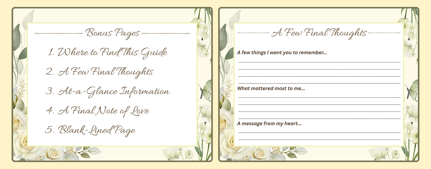 A Gift for When I’m Gone includes the following pages: