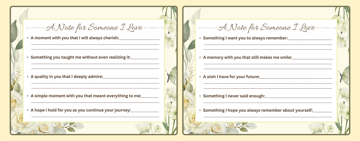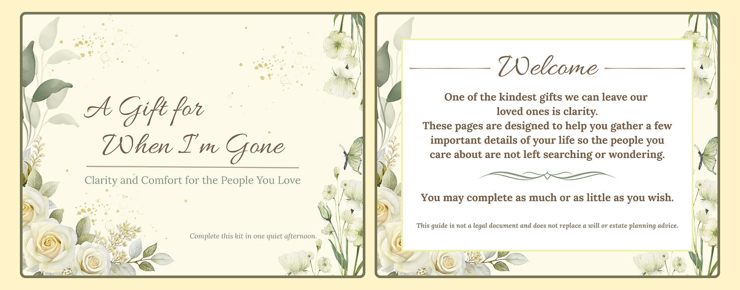 If this touches your heart, you’re warmly invited to download A Gift for When I’m Gone. The price has been kept intentionally gentle so that anyone who wishes to benefit from it can do so easily.