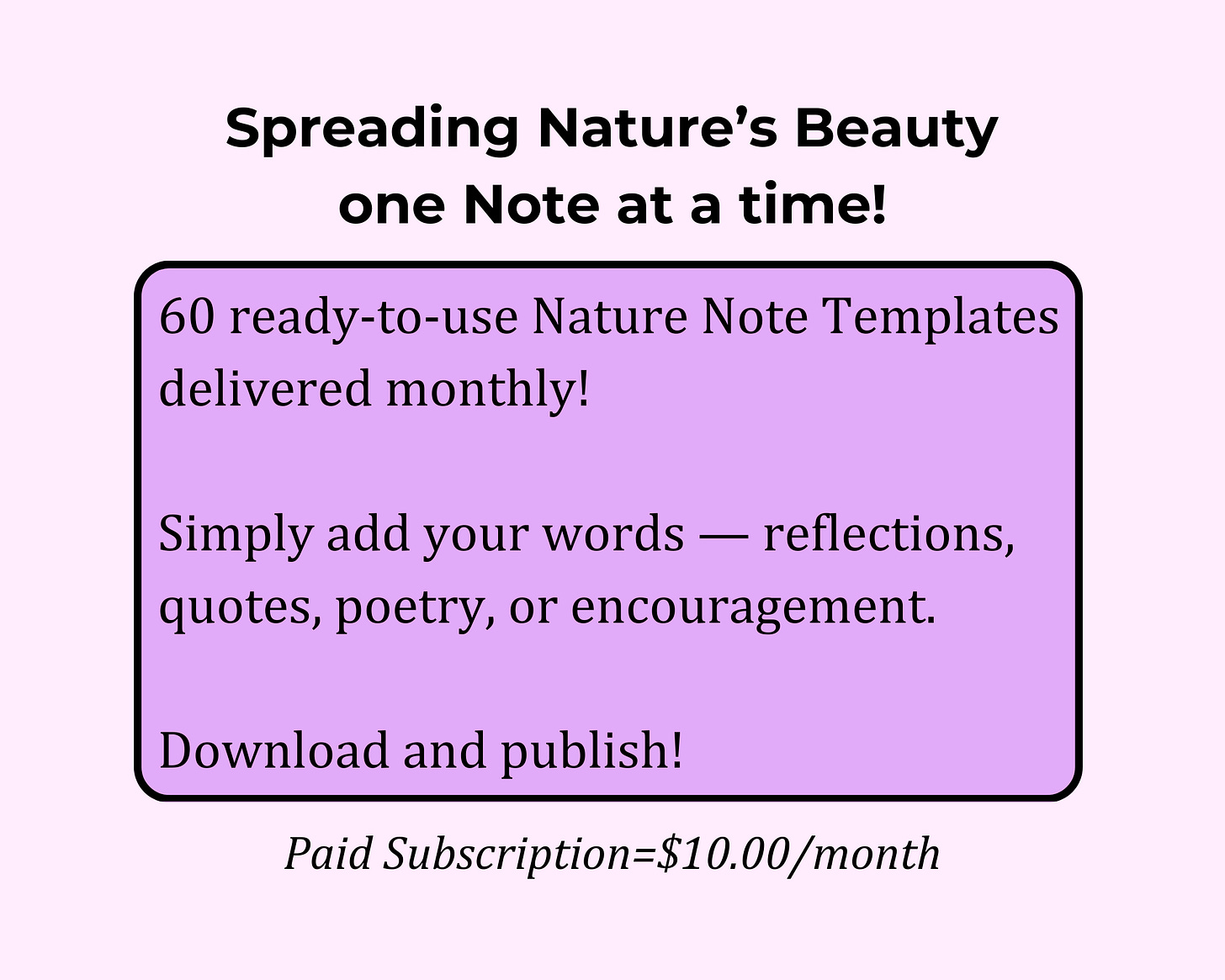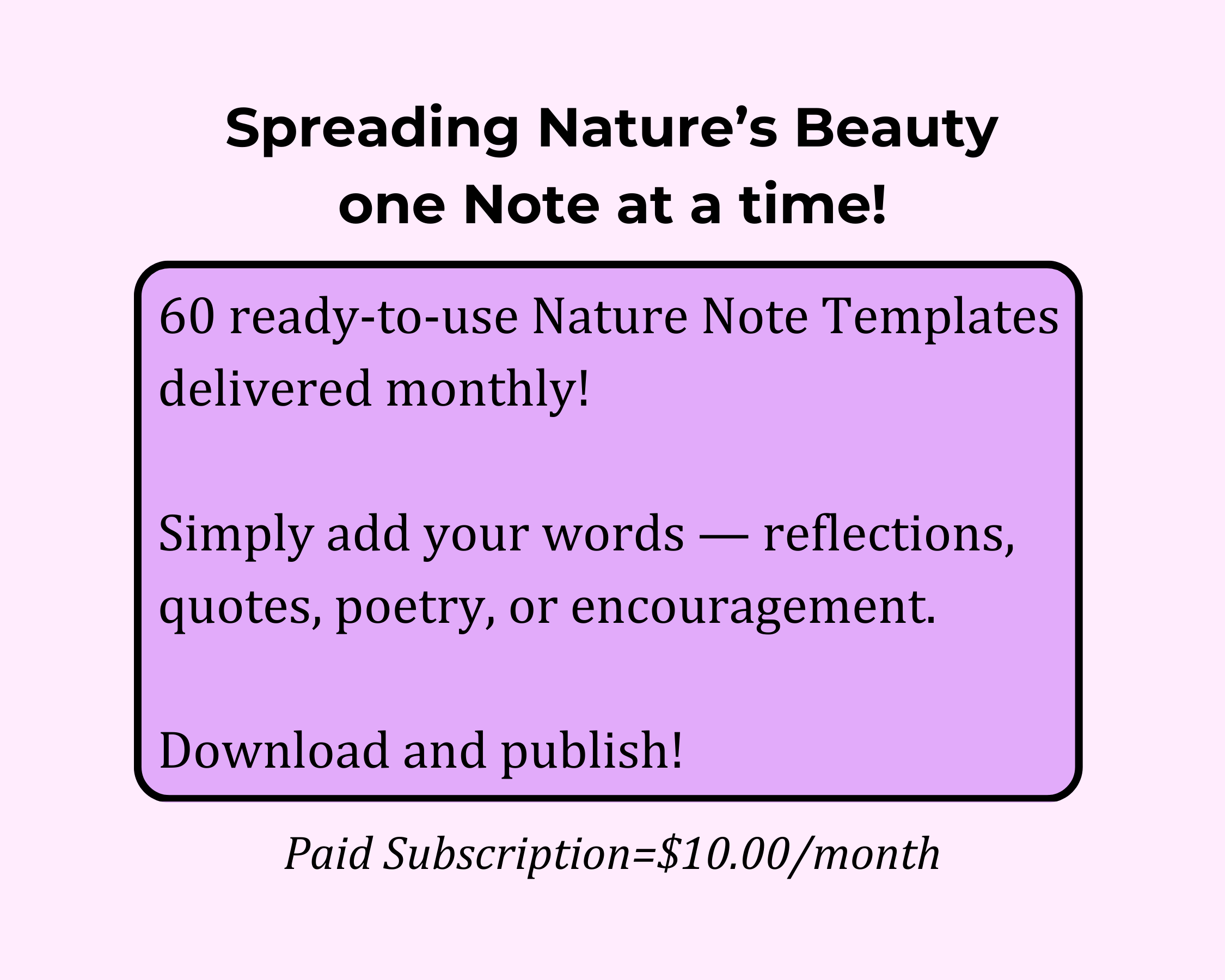 Your 60 Nature Note Templates Delivered at the Beginning of Each Month